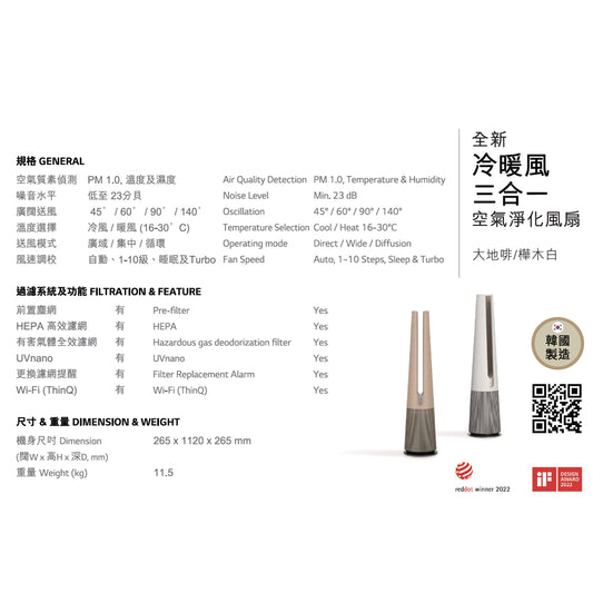 【NEW】LG PuriCare™ AeroTower 三合一空氣淨化風扇