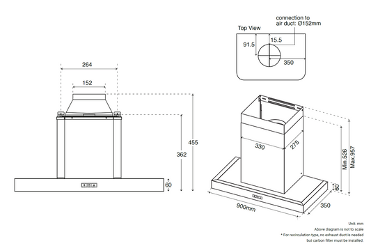 Whirlpool AKT3590/IX 900mm Chimney hood 1,200m3/hr