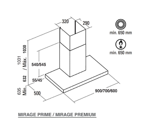 NODOR MIRAGE X 600/700/900mm wall mounted rangehood