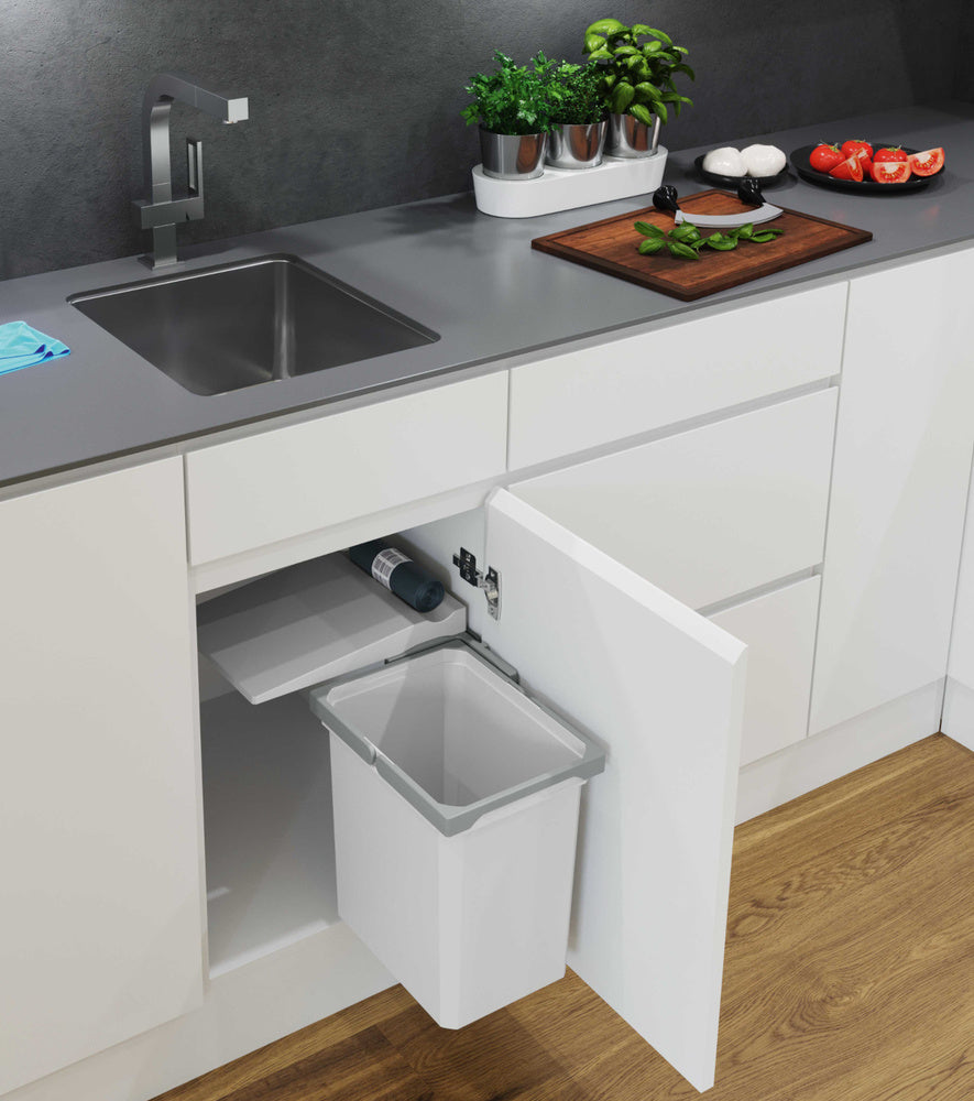 Simple removal of the complete system for cabinet cleaning. Smooth surfaces for easy cleaning. Bins can be washed in the dishwasher at up to 70°C.